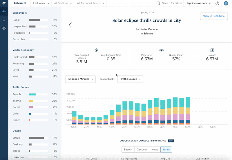 Chartbeat is a content intelligence platform that empowers media companies to build loyal audiences through real-time and historical editorial analytics across desktop, social, and mobile platforms. Founded in 2009 and headquartered in New York City, Chartbeat partners with over 60,000 media brands across more than 60 countries. The platform offers tools such as real-time dashboards, headline testing, in-page optimization, and robust reporting to help publishers understand and enhance audience engagement.